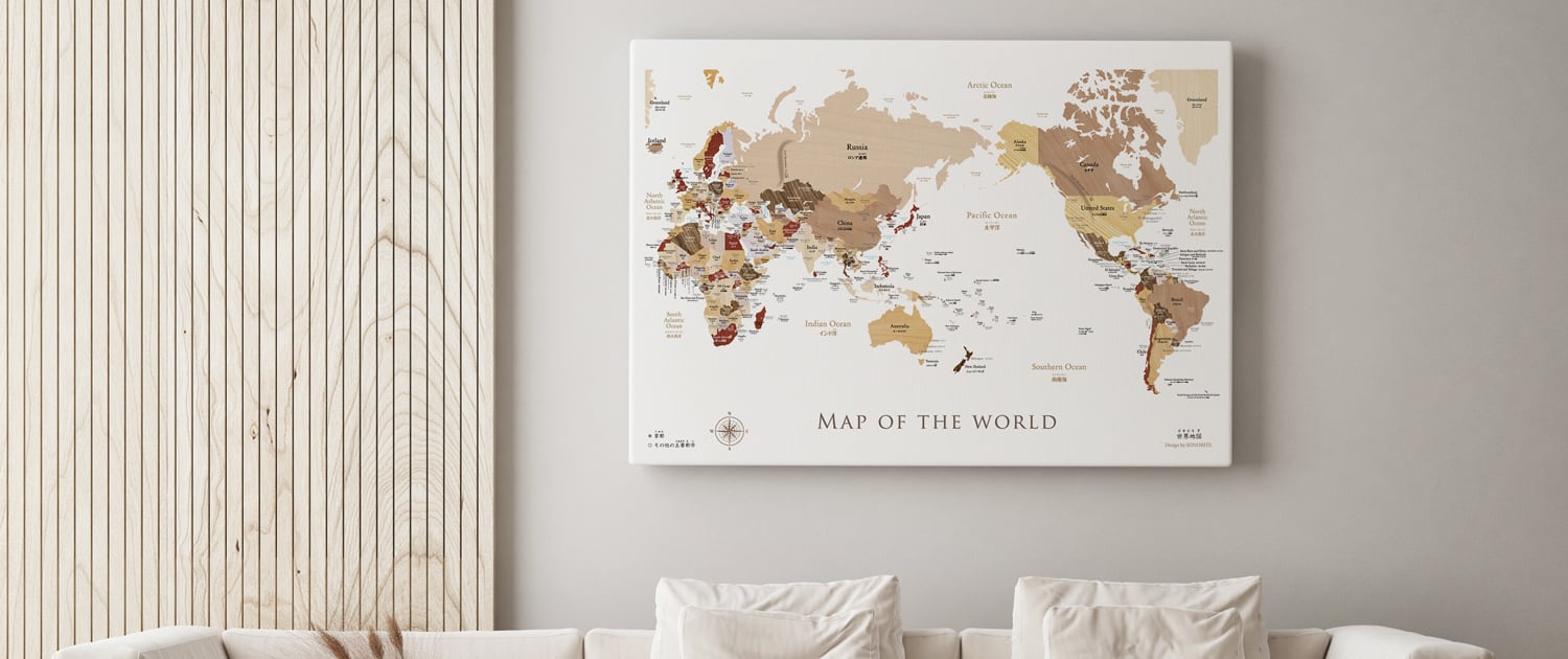 世界地図 キャンバス 送料無料 旅行ピンマップ A1/B1 木目調/パステル/ネイビー 壁かけ 受注生産 ソノリテ SONORITE