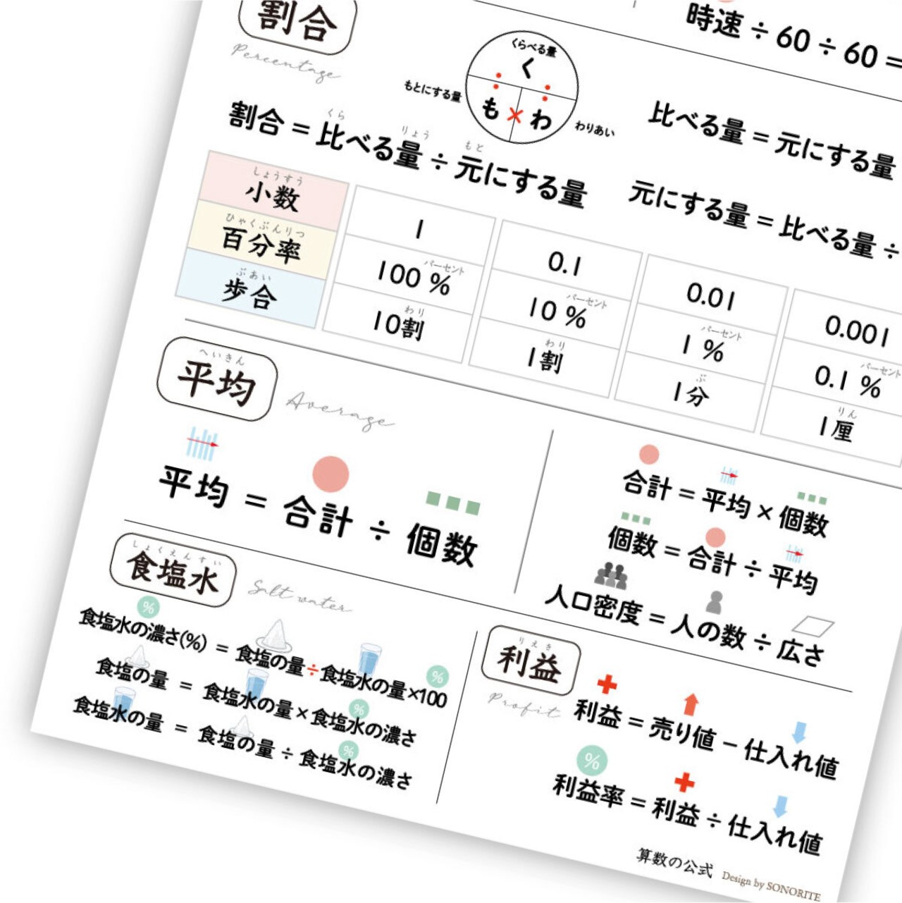 【下敷き】算数の公式 小学生 中学生 高校生 A4サイズ ソノリテ