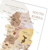 送料無料【受注生産】木目調の韓国 地図 A2サイズ マップ 世界 旅行 社会 知育