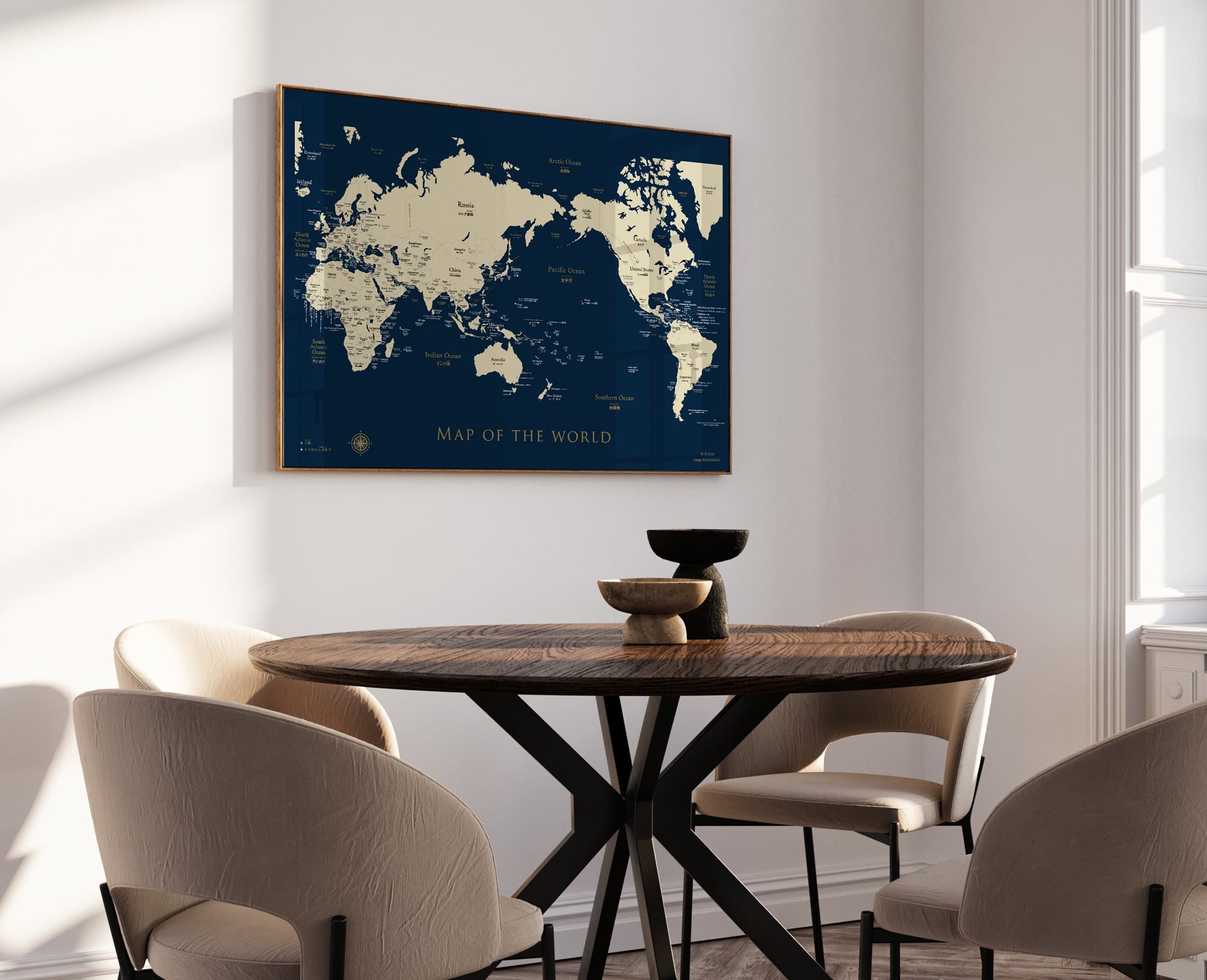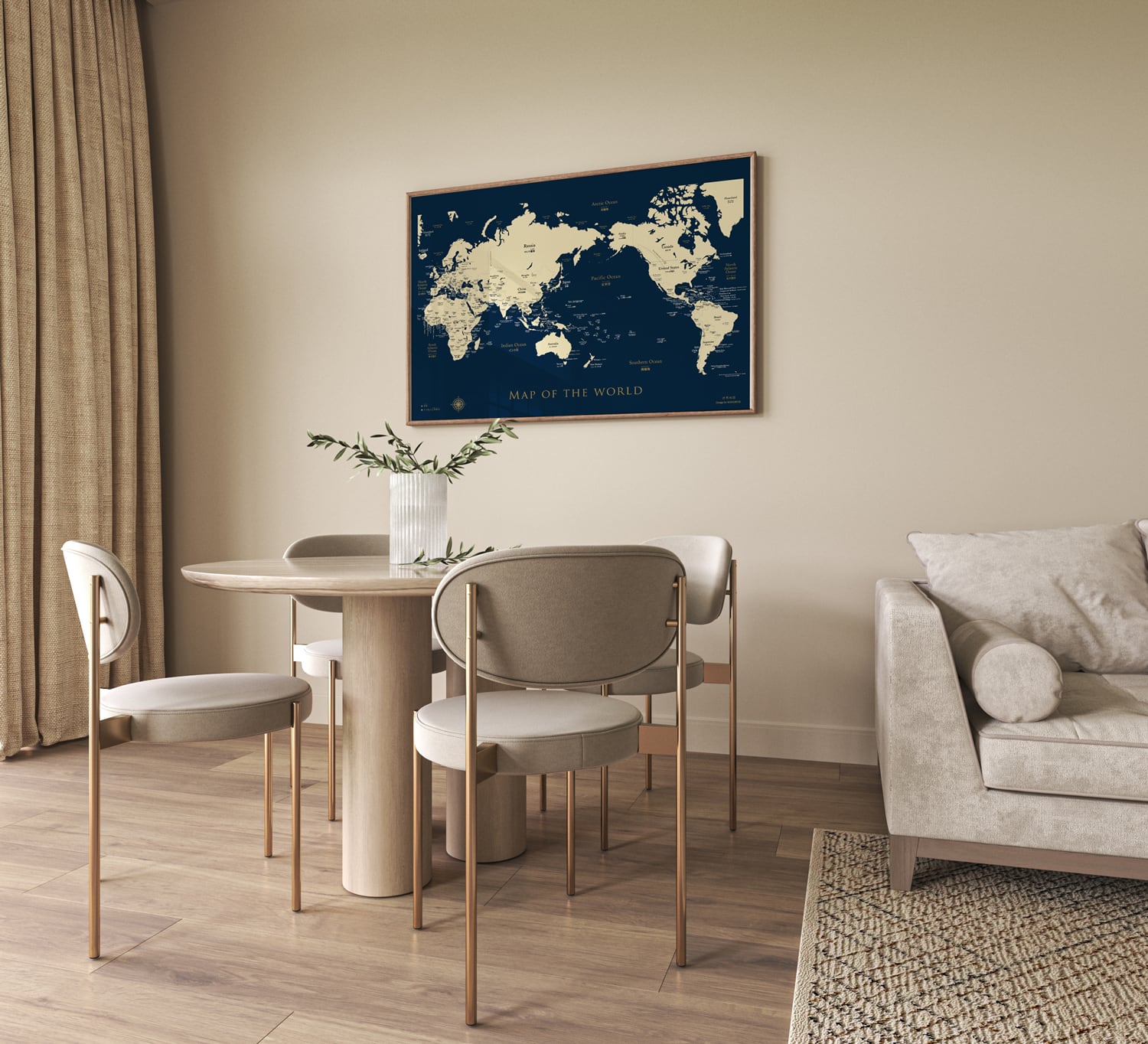 落ち着いたネイビーカラーの世界地図ポスターが新登場!
