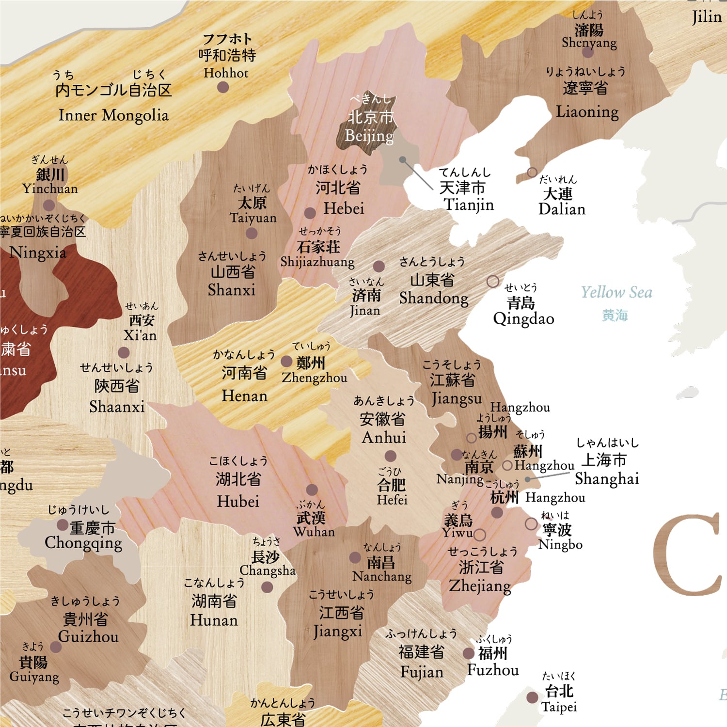 中国 地図 木目調 中華人民共和国 わかりやすい A2サイズ おしゃれ マップ 世界 旅行 社会 知育