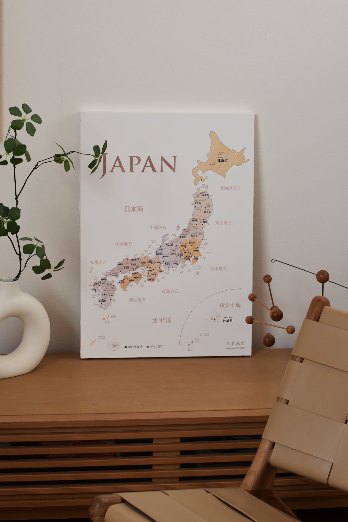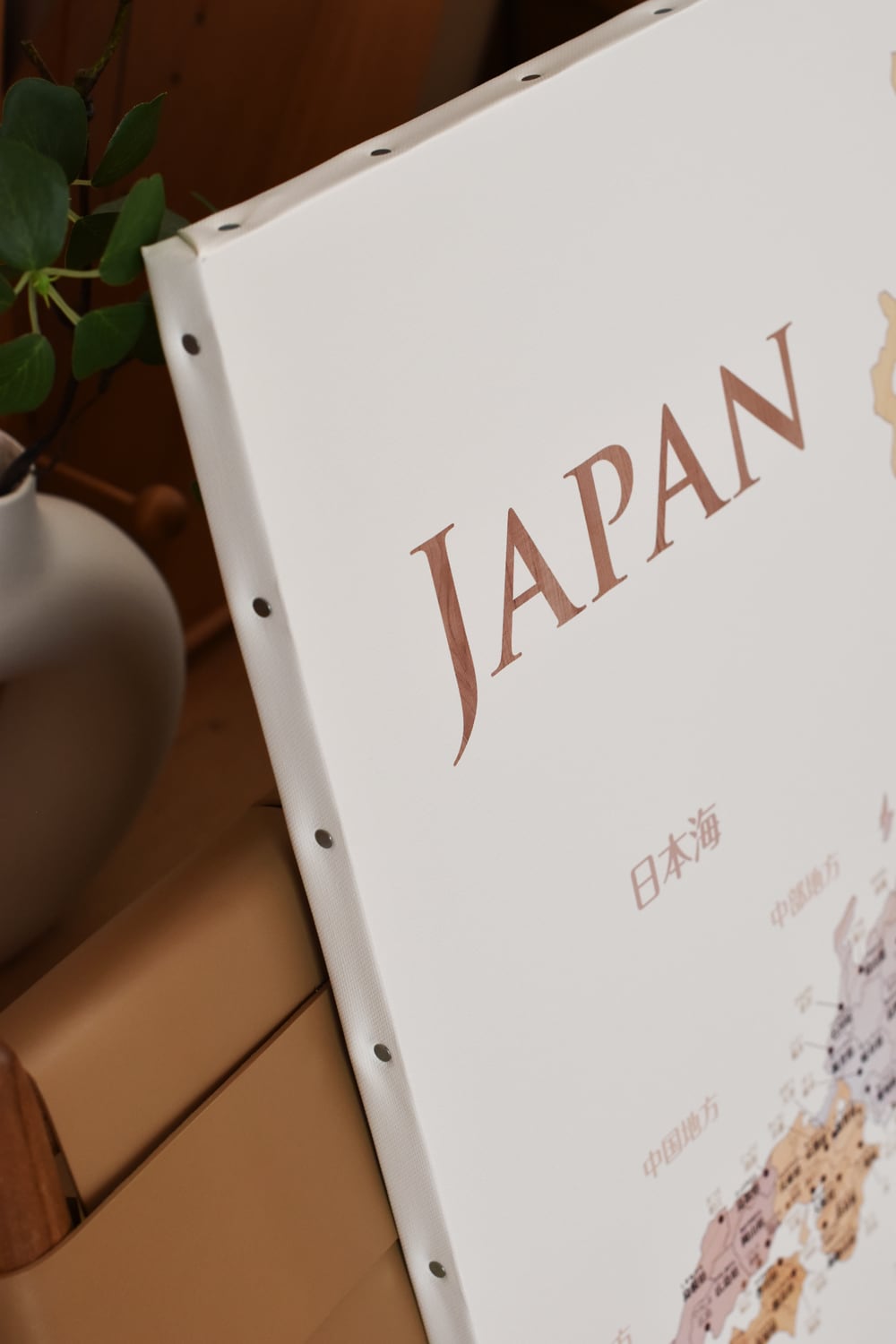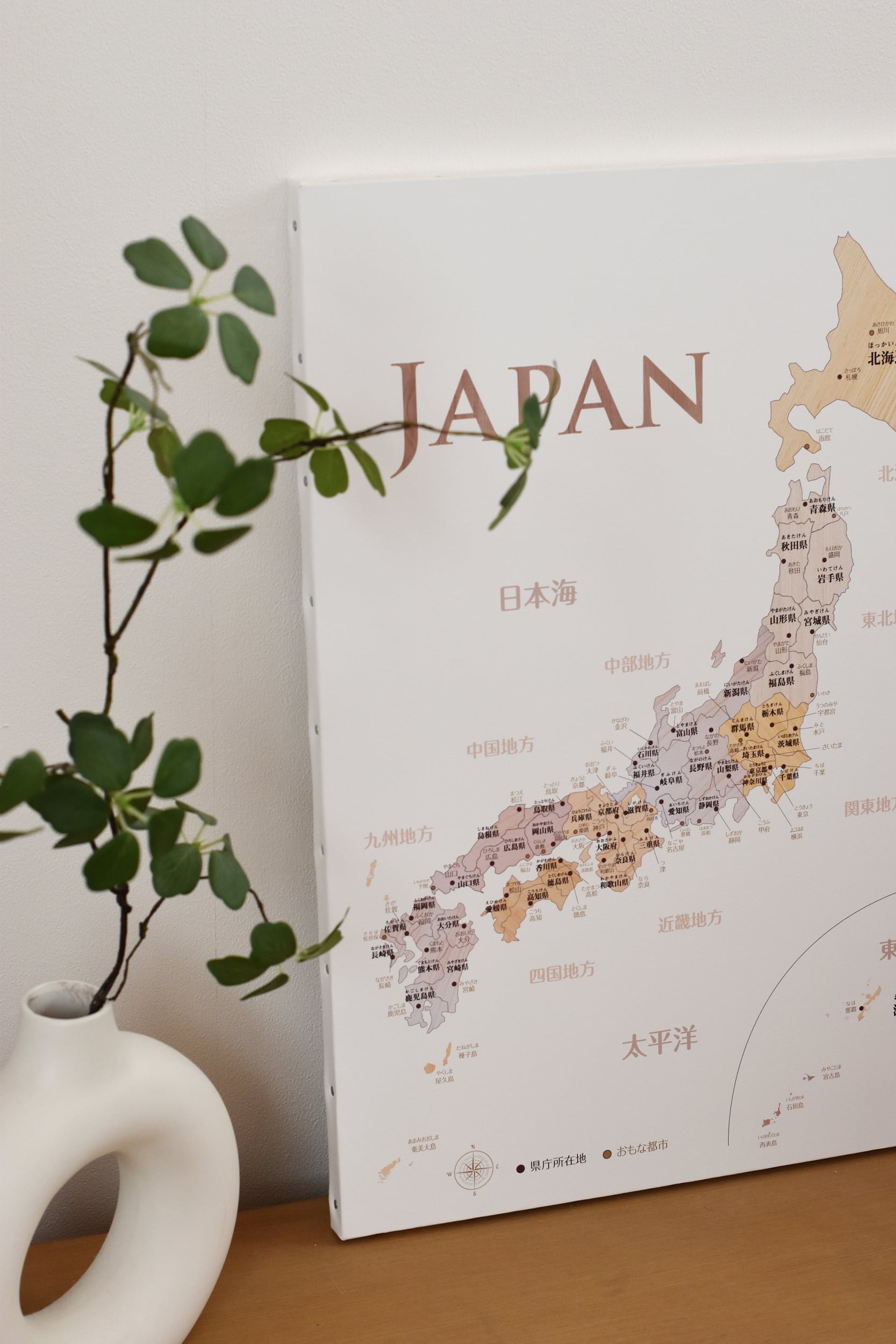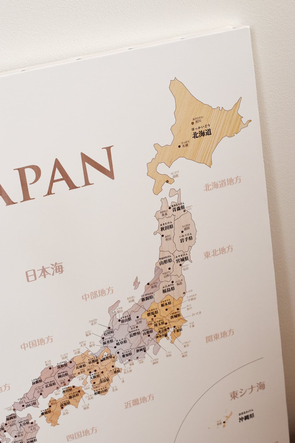 例:世界地図(日本中心・木目調)など