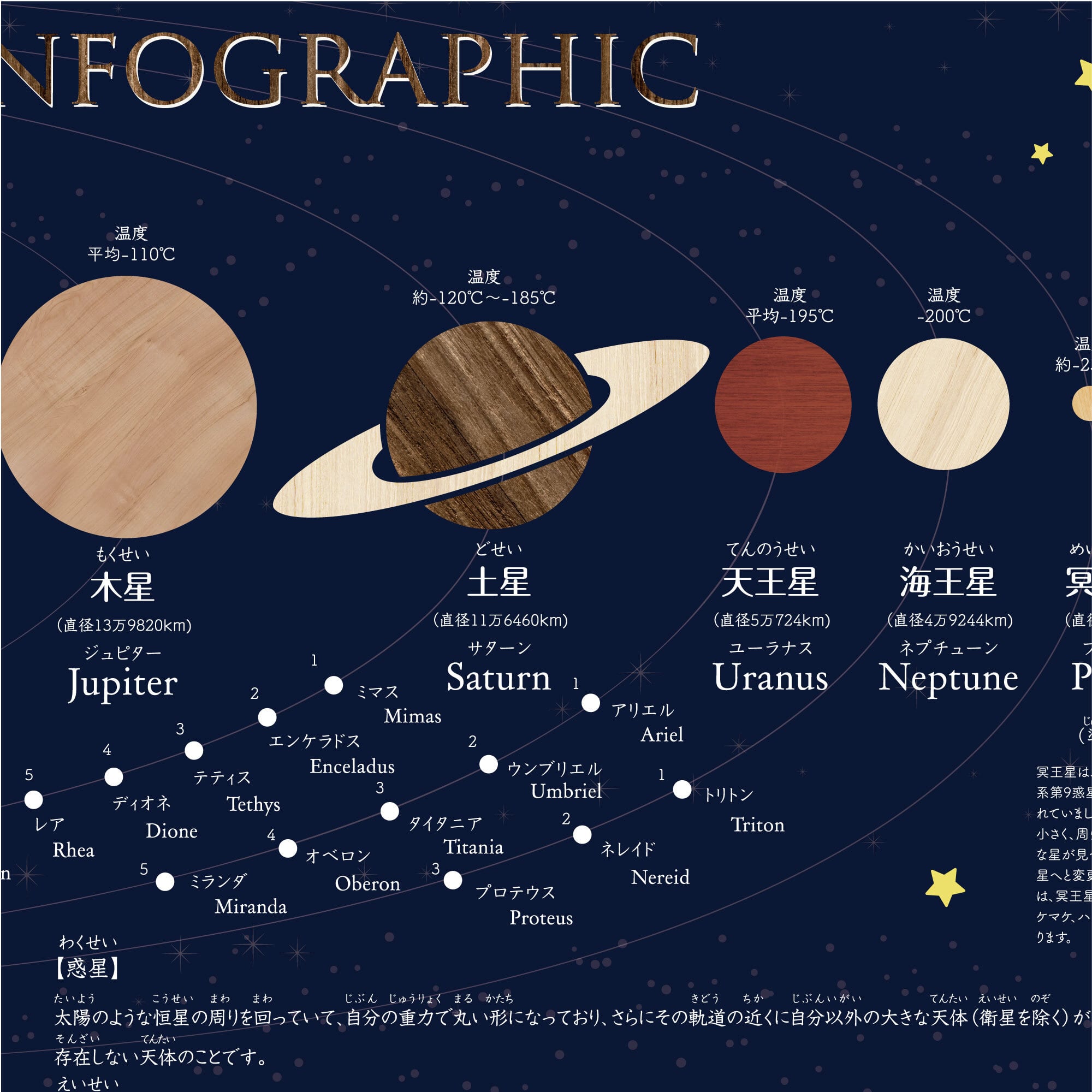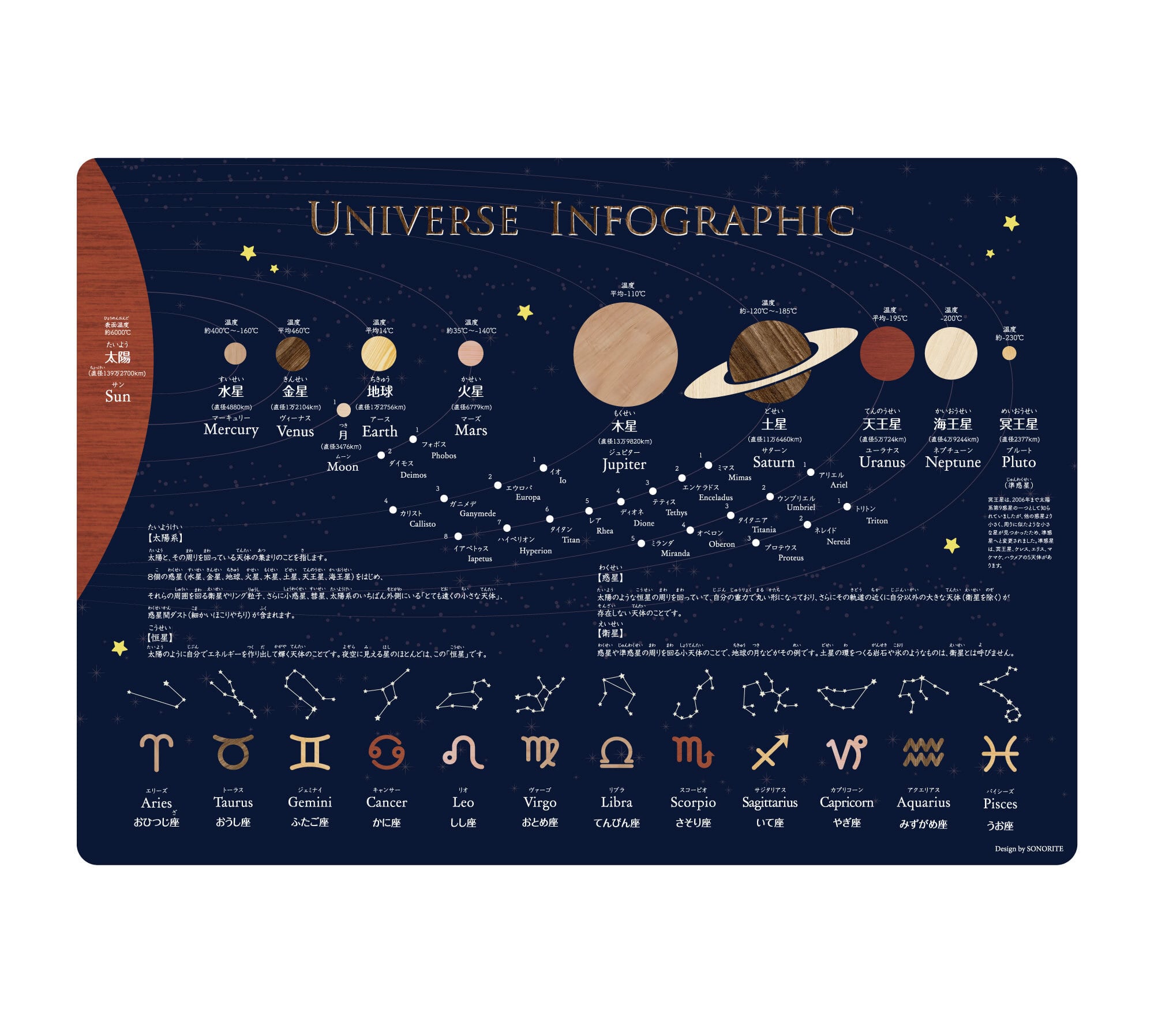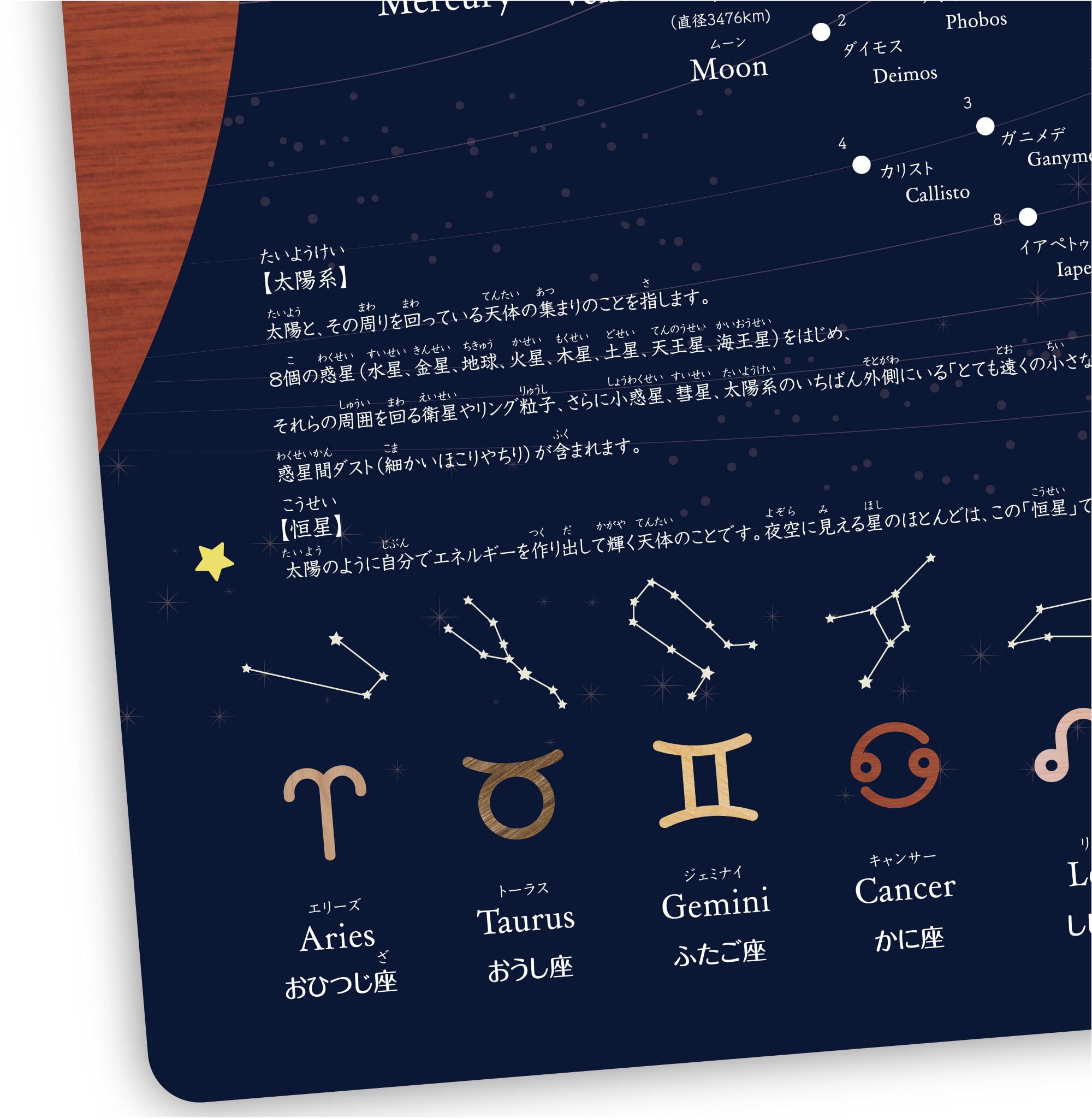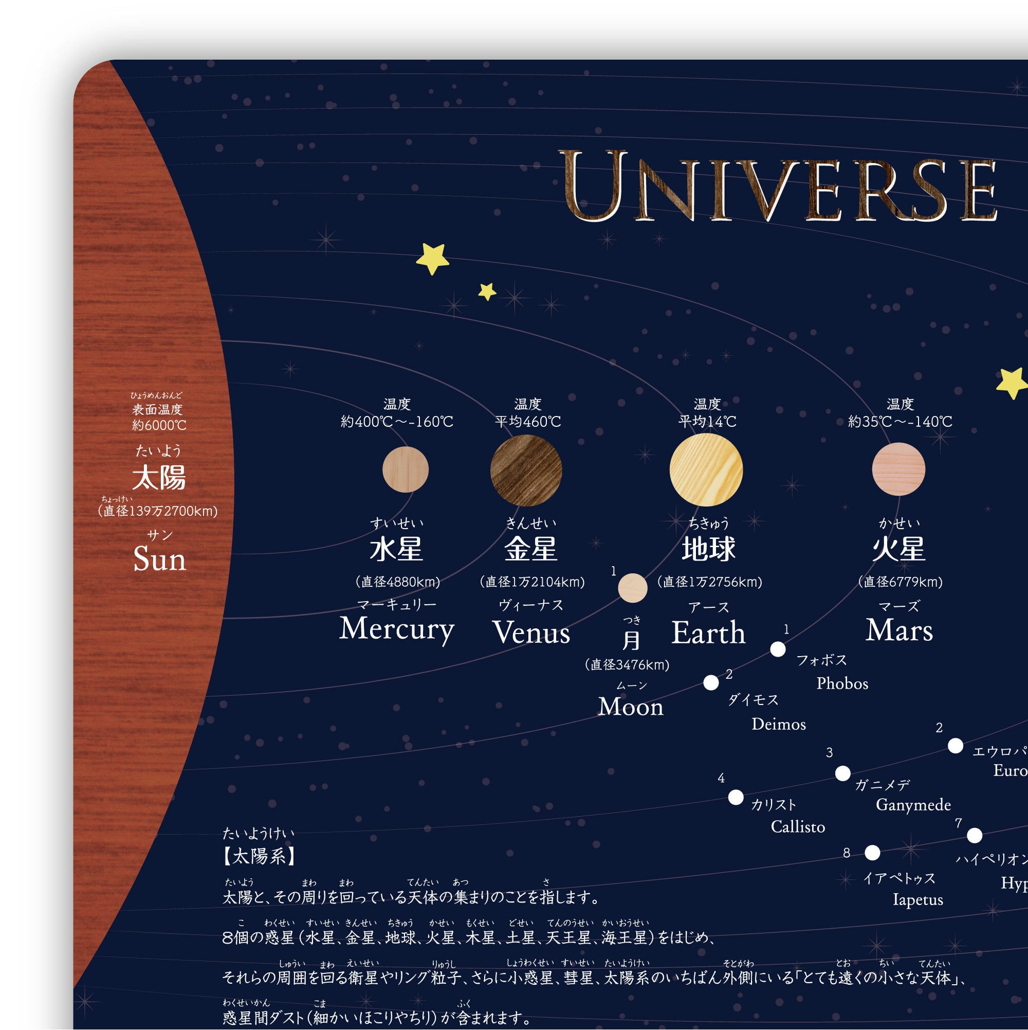 ・惑星や衛星など宇宙の全体が学べるポスターです。