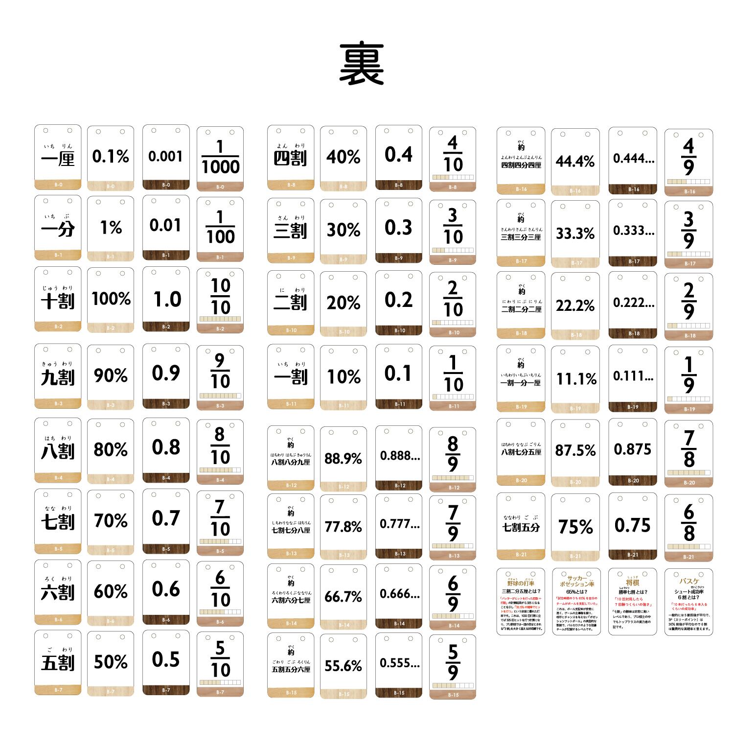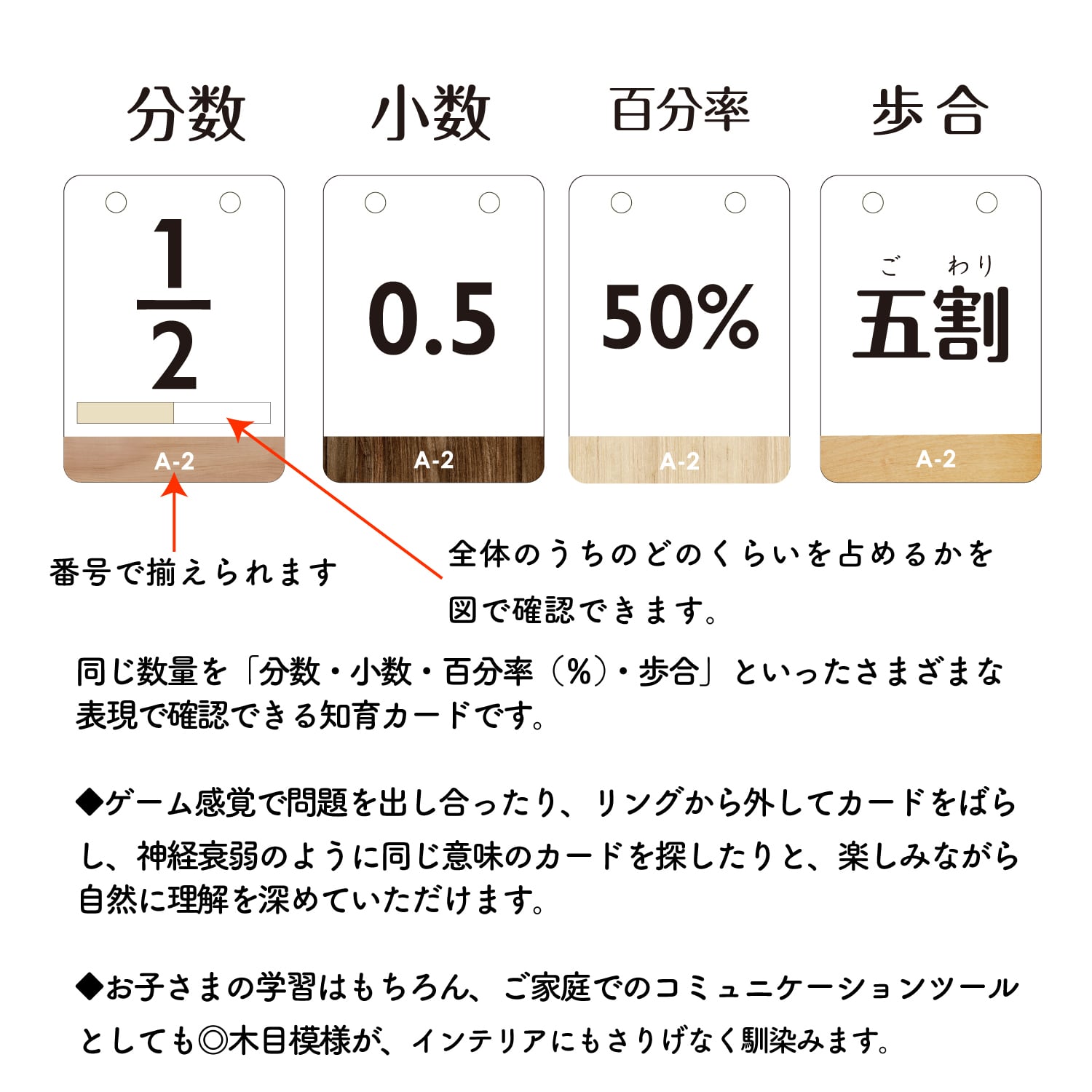 分数 割合 百聞率 知育カード 算数 数学 卓上 万年使える 1年 木目 インテリア ナチュラル