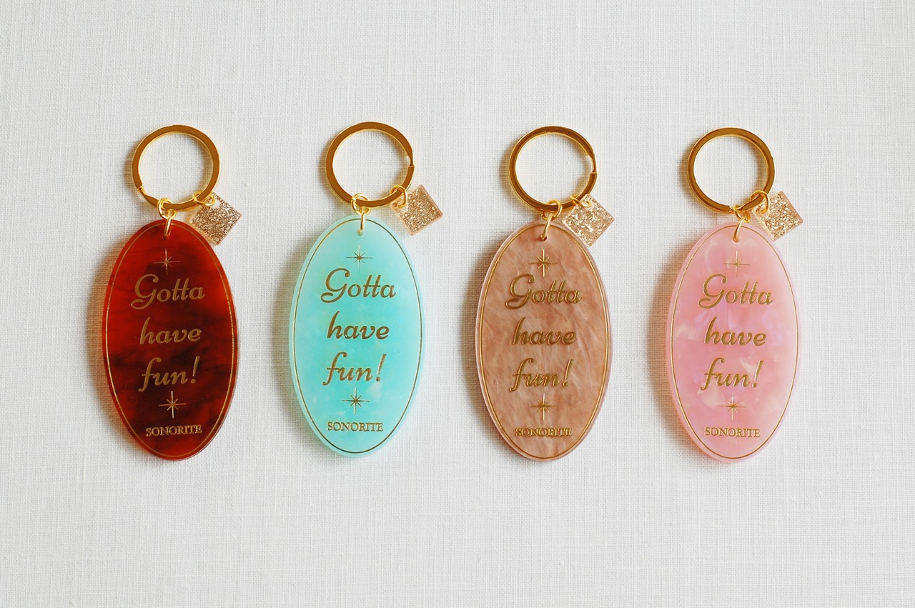 しっかりとした厚み4~5mmのキーホルダーで存在感も十分!