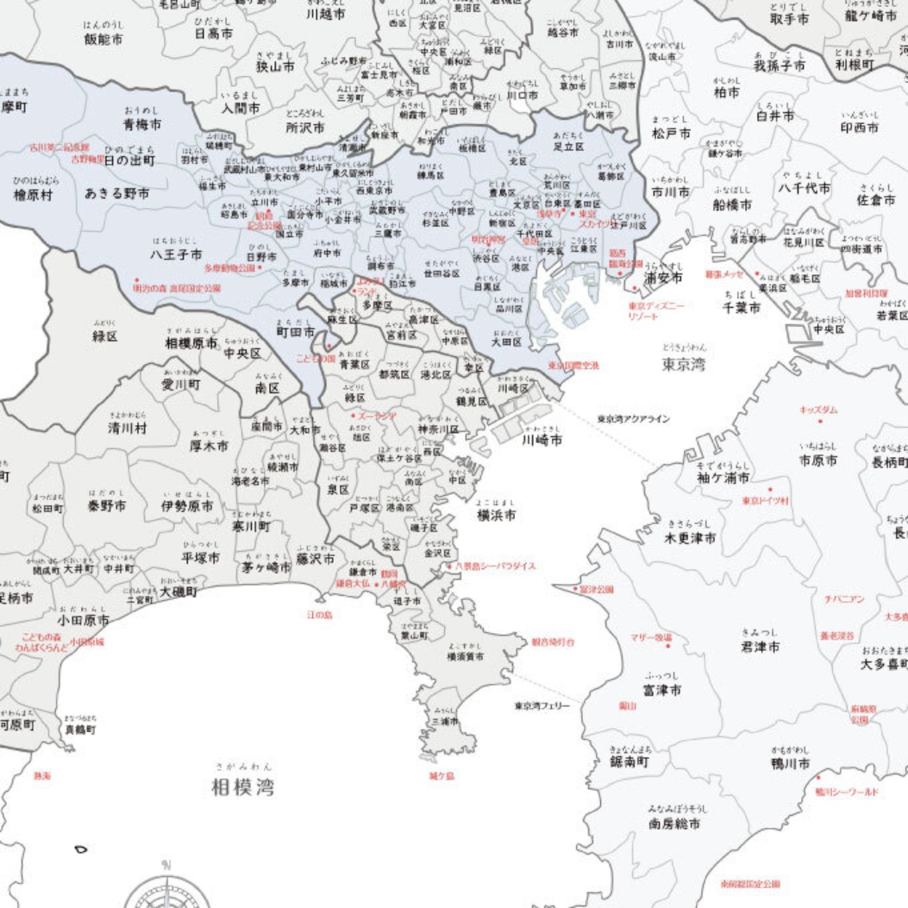 インテリアを邪魔しない、クールで爽やかな関東地図です♪