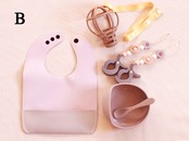 福袋!お得な初めての赤ちゃんスターター4点セット (シリコンボウルセット マルチクリップ レザー調ビブ 気球型シリコンボール おしゃぶり)