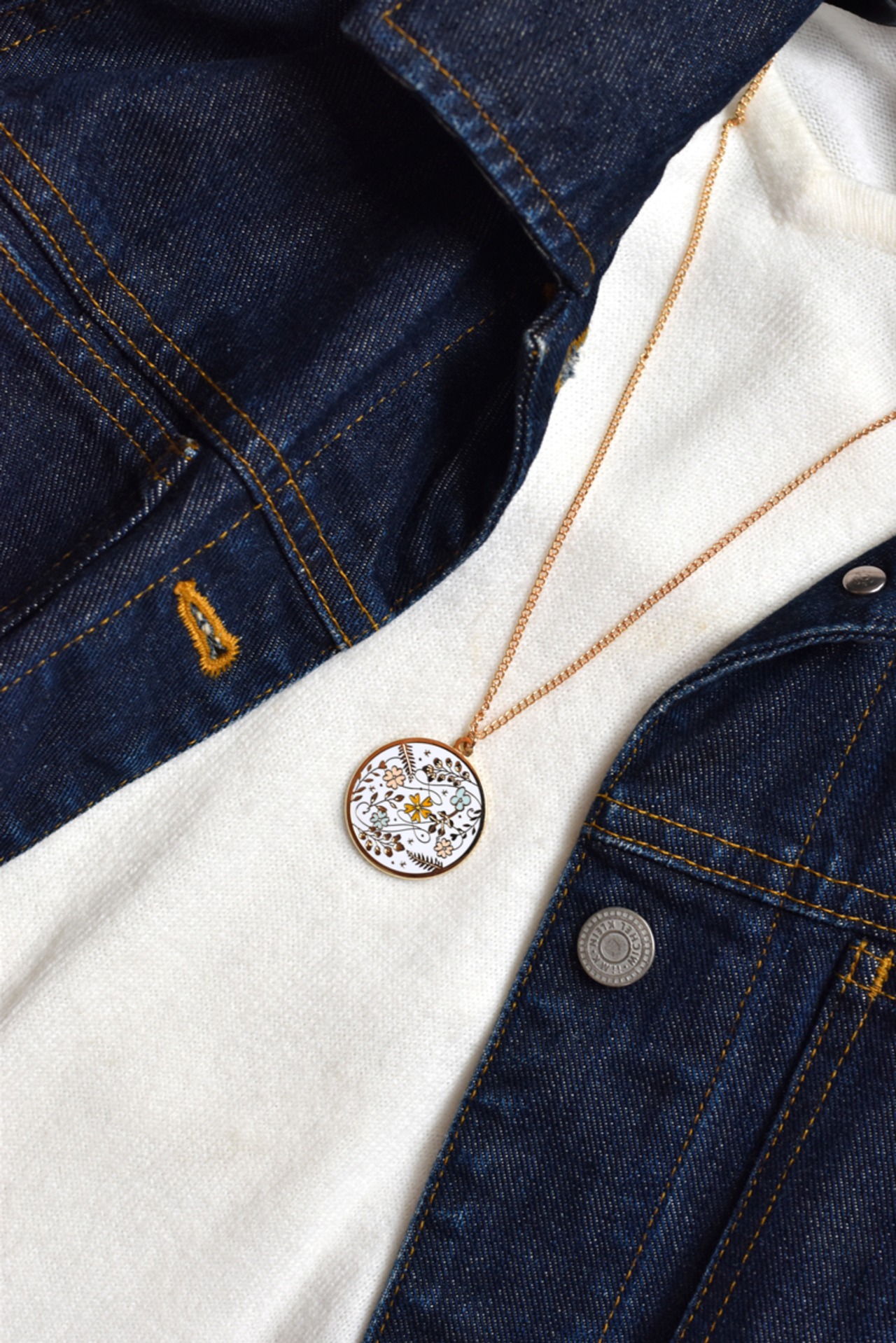 ラウンドフラワーの ネックレス アクセサリー ホワイト 草花